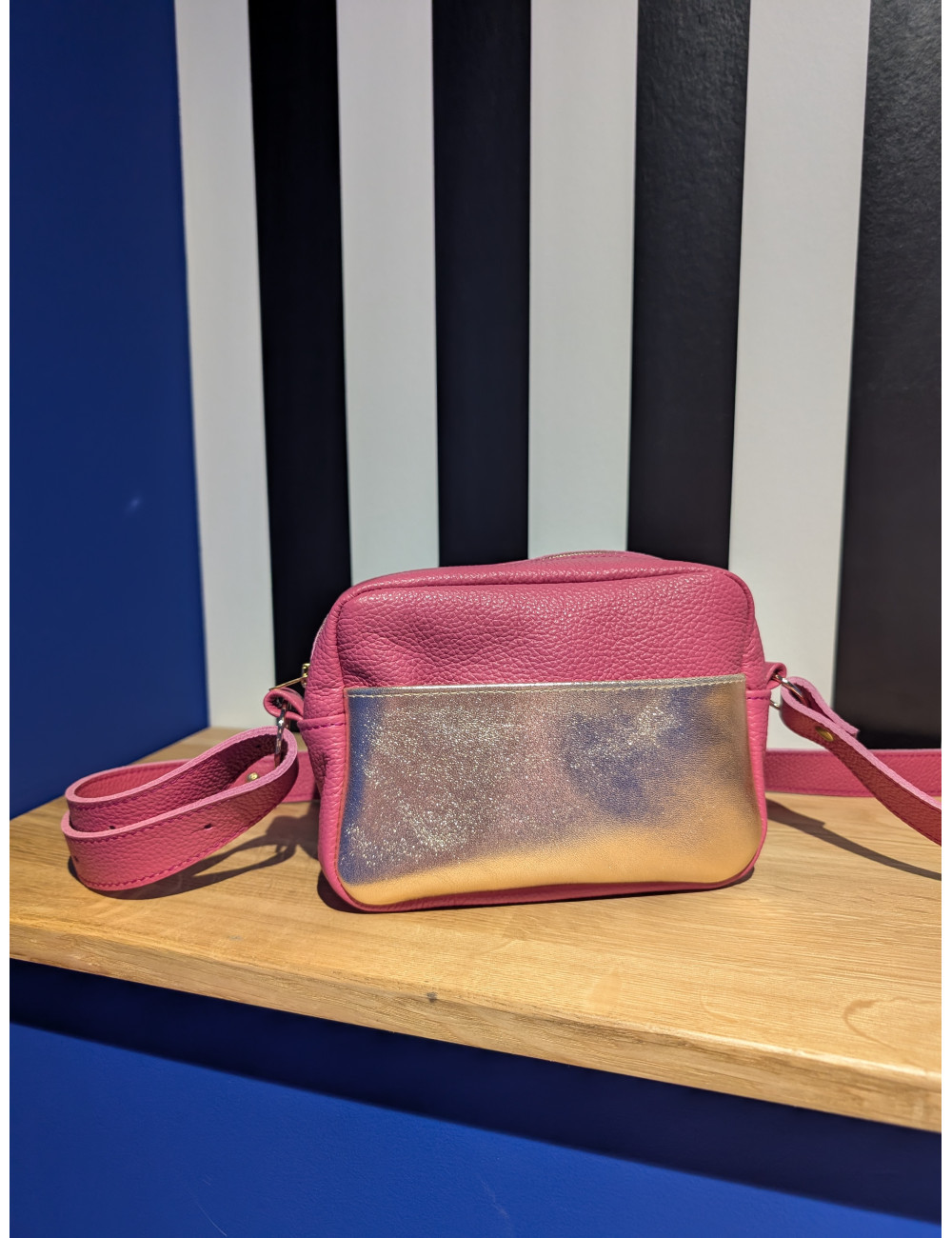 Le Mexico nous charme par sa touche d’élégance et de raffinement grâce à la poche plaquée également en cuir métallisé sur la face du sac.