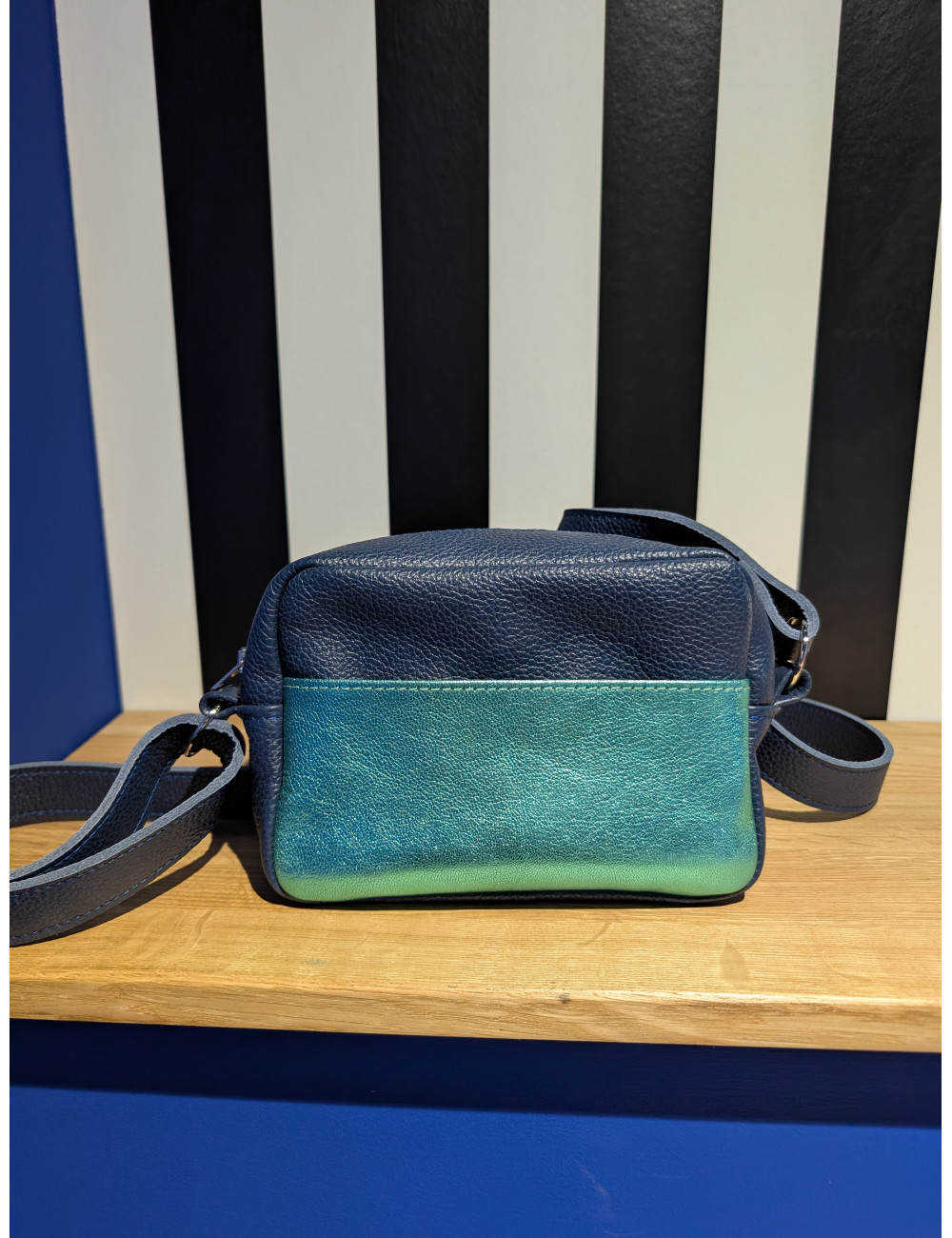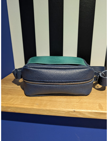 Sac porté épaule « Le Mexico » Bleu marine et émeraude.